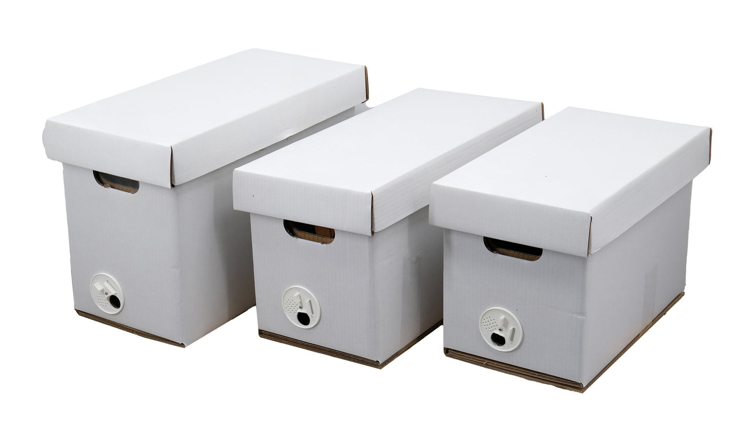The waxed corrugated cardboard offers surprisingly high dimensional stability and can safely withstand the weight of a five-comb-strong nuc.