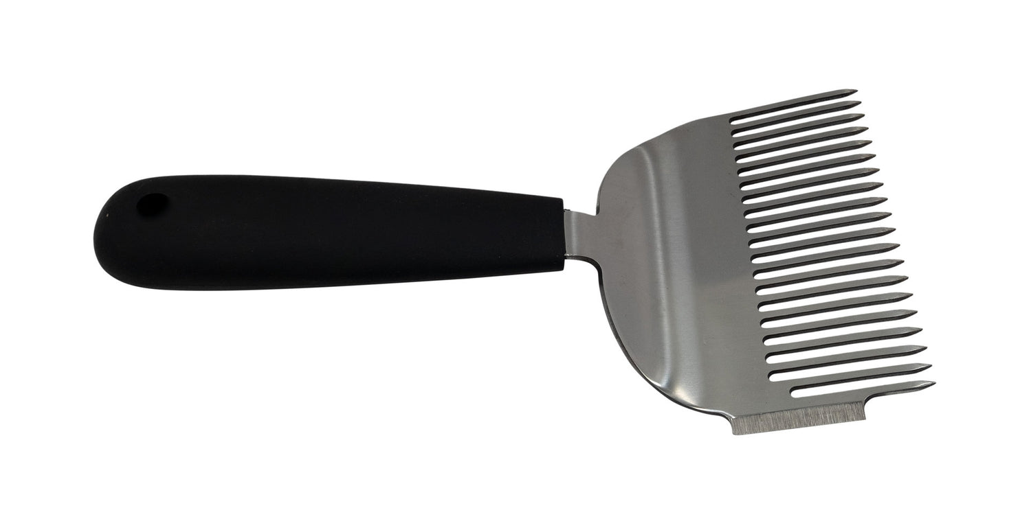 Questo Forchetta per disopercolare laser con 16 rebbi affilati e dritti in acciaio inox ed integrato graffio sul telaio laterale è uno strumento versatile e robusto per qualsiasi attività di apicoltura. Particolarmente adatto per la disopercolatura precisa di interi favi e per la rilavorazione in aree difficili da raggiungere come angoli dei favi o celle infossate.