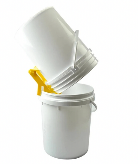 Zeefemmer 50 kg onder zeefkan voor honing. Past onder de spinner